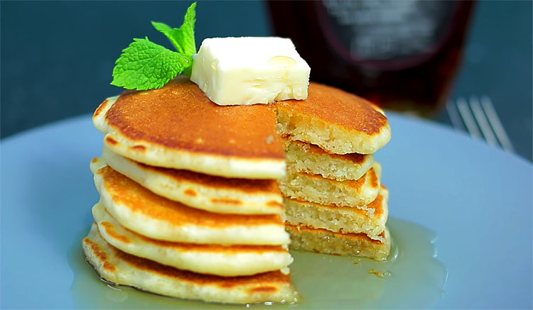 За счет того, что тесто получилось очень воздушным, блинчики моментально пропитываются сиропом и становятся невероятно вкусными. И не остается никакой тяжести после, ведь масло на сковороде мы не использовали.