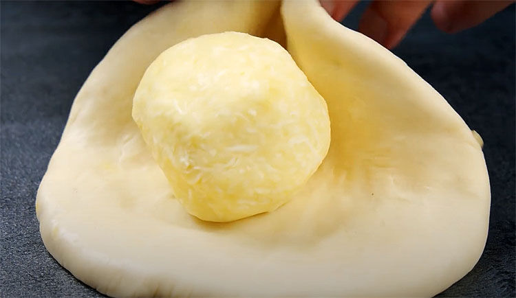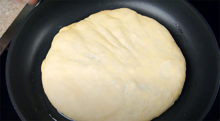 Каждый шарик теста раскатайте в лепешку, выложите в центр начинку и защипните края так, чтобы получился аккуратный мешочек. Затем осторожно раскатайте лепешку до размера сковороды, сохраняя равномерную толщину.