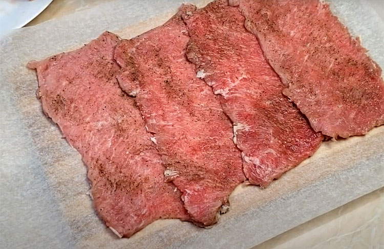 Мясной рулет по новому рецепту готовится быстро и получается сочным, но при этом не жирным. Для его приготовления используются два вида мяса, которые сначала отбиваются, а затем заворачиваются в пергамент, создавая форму косички.