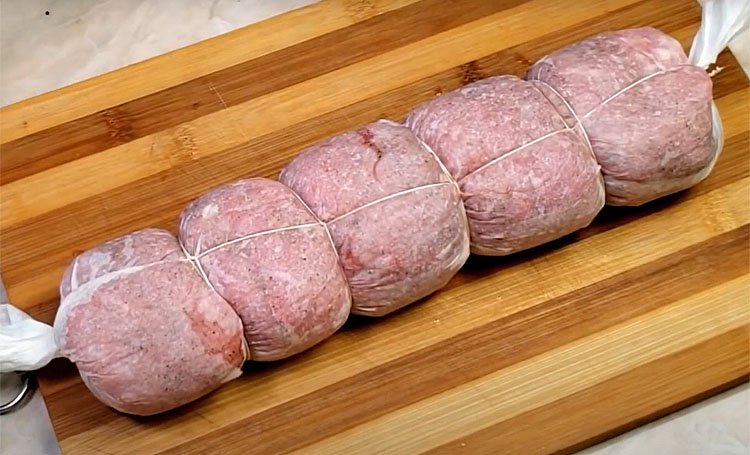 Домашняя запеченная колбаса из обычного фарша. Никаких сложностей с упаковкой - готовим в бумаге