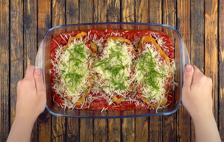 6. Блюдо получается сочным, с расплавленным сыром внутри и ароматным томатным соусом. Можно подавать как самостоятельное блюдо или с гарниром: пастой, картофельным пюре или свежими овощами.
