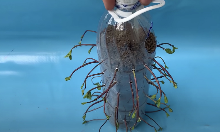 Совет: если отверстие сделать чуть больше, веточка лучше «схватится» в грунте, но не будет болтаться.
