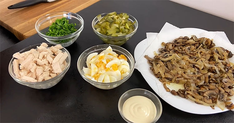Салат Оливье уже давно стал привычным блюдом на нашем столе и появляется чаще других, но раньше найти достойную альтернативу было сложно. Салат «Осенний вальс» — отличная замена: он готовится проще и подается теплым, сочетая обжаренные с луком шампиньоны, отварное куриное филе и свежие ингредиенты.