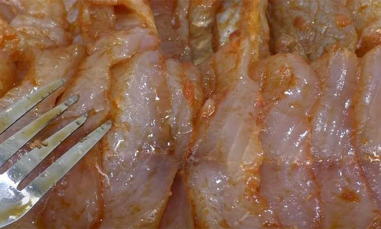 Перекладываем всю щуку в глубокую миску засыпаем ее засолочной смесью. Тщательно перемешиваем и перекладываем в удобную тару. Оставляем на ночь в холодильнике. Через шесть часов перекладываем рыбу на решетку. Важно дать ей обсохнуть перед следующим этапом.