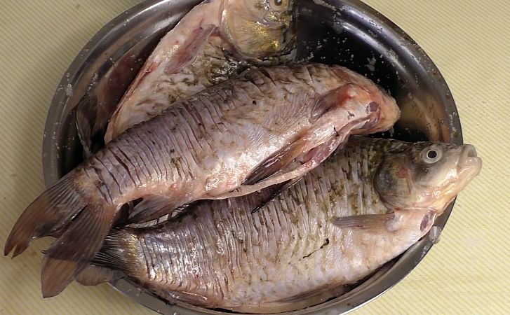 Караси как и любая другая мелкая речная рыба считаются очень костлявыми. И действительно, в них очень много мелких костей, которые при неправильной жарке в два счета испортят все удовольствие от вкуса. Избавимся от них с помощью особой подготовки: наши караси будут без костей, а для большего вкуса замаринуем их сметаной.