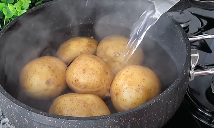 1. Очистите картофель и нарежьте крупными кусками, чтобы он быстрее сварился. Положите картофель в кастрюлю с холодной водой, добавьте щепотку соли. Доведите до кипения, уменьшите огонь и варите до мягкости (проверяйте ножом или вилкой). Слейте воду и оставьте картофель слегка остыть.
