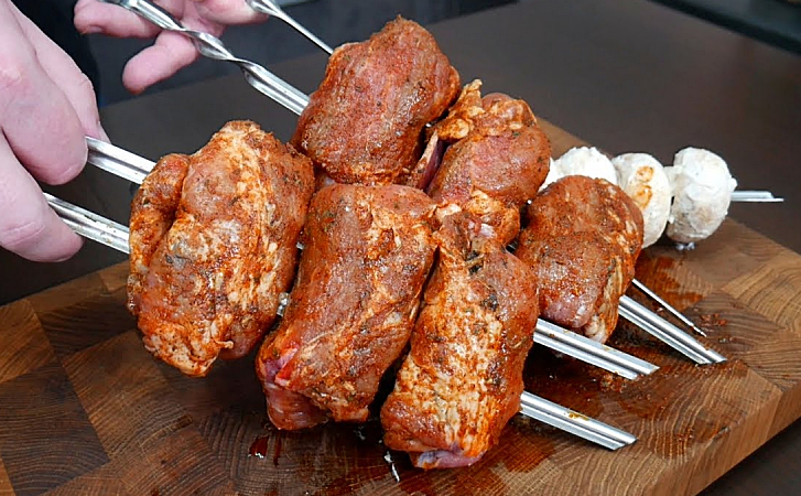 Шашлык и духовка – два различных способа приготовления блюд, но мы продемонстрируем метод приготовления шашлыка, который по вкусу практически неотличим от того, что готовится на мангале, прямо у вас на кухне. Уникальность рецепта заключается не только в маринаде: мы предлагаем готовить мясо в виде рулетов с начинкой из грибов и лука.