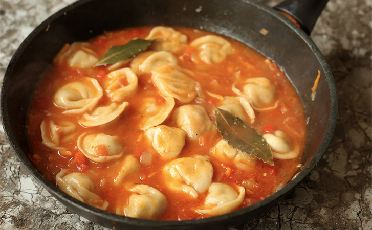 Обычные пельмени на самом деле вкуснее не варить, а протушить в особой подливе. Маленькая тонкость, небольшое изменение рецепта и вот на столе уже не просто пельмени, а по-настоящему ресторанное блюдо.