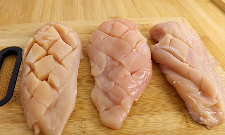 1. Вымойте куриное филе и обсушите бумажным полотенцем. Сделайте неглубокие надрезы (не до конца) в двух направлениях: поперёк и вдоль, чтобы получилась «решётка». Это помогает маринаду проникнуть глубже, а мясу — лучше пропитаться вкусом.