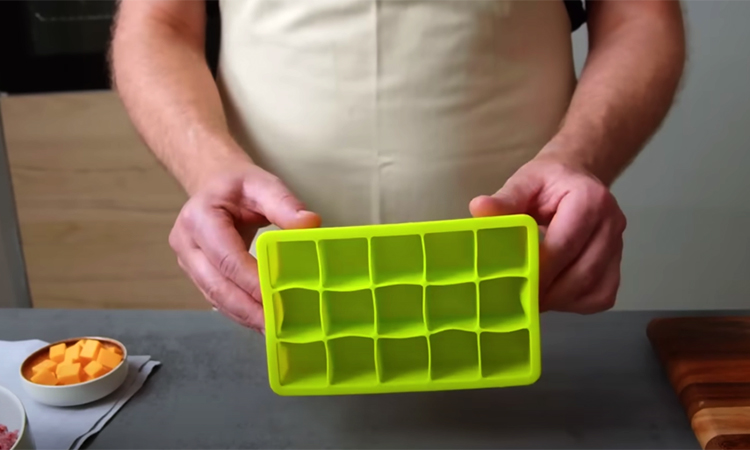Обычно фарш сразу пускают на котлеты. Однако намного интереснее будет заморозить его в форме для льда с кусочком сыра в центре. Когда понадобится достаточно будет достать, бросить в кипящее масло и уже через 10 минут на столе будет полноценный ужин.
