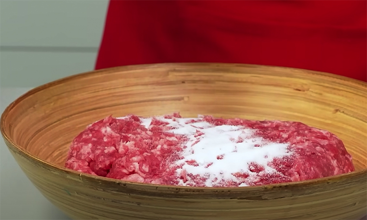 Срежьте верх кочана капусты, уберите большую часть внутренних листьев. Таким образом мы освободили место под начинку. Для нее в глубокой миске смешайте фарш, соль, черный перец. Опционально сюда можно добавить и другие специи, не помешает и чеснок. Получившейся начинкой заполняем капусту. В центр отправляем крупный кусочек сыра.