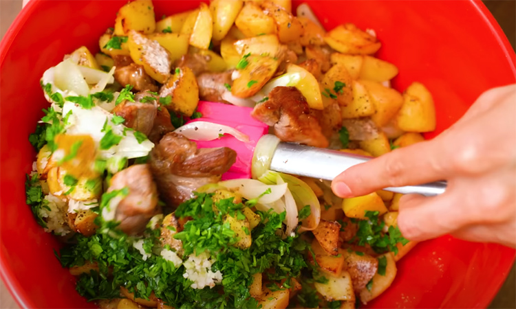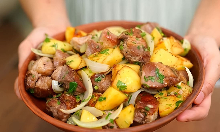 Классическое оджахури ценится за простоту приготовления и за удивительное богатство вкуса. Сначала мясо маринуют в смеси пряностей, чеснока и масла, затем обжаривают до золотистой корочки, а картофель жарят отдельно, чтобы он вобрал в себя соки и ароматы. Соединяют только все в самом финале, а затем еще и дополняют луком, болгарским перцем и зеленью — неудивительно, что в Грузии оджахури считается царским блюдом.
