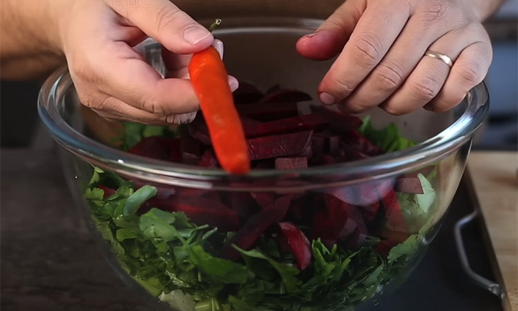 В грузинской кулинарной традиции капуста заквашивается сразу со свеклой. Вместе овощи превращаются почти в полноценный салат: капуста остается хрустящей, но пропитывается соками и специями — вместе с ароматами зелени. Такое соленье из капусты разберут быстрее привычных маринованных огурцов и помидоров.