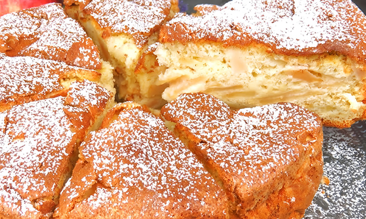 За счет двух видов теста королевская шарлотка получается намного нежнее обычной, тут нет риска получить пересушенные коржи. Большое количество фруктов в начинке в духовке само превращается в нежнейший крем: пирог выходит большим, но готовить его очень просто.