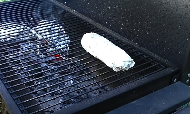 Разогрейте духовку до 130 °С. Выложите рулеты на решетку (не на противень, чтобы жир стекал) и запекайте около 1 часа. Если готовите на углях, оберните немного щепы в фольгу и положите рядом — получится лёгкий аромат копчения. Через 40 минут проверьте: паштет должен слегка подрумяниться и пустить сок.
