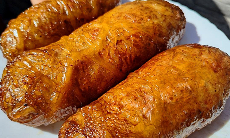 Паштет в жировой сетке отличается особенной текстурой: внутри он остается мягким и нежным, а сетка удерживает всю сочность и жир, создавая естественную оболочку, которая при запекании становится ароматной и слегка поджаренной. Сочетание печени, сала и специй делает вкус насыщенным — в результате получается не просто паштет, а полноценный закусочный рулет с ярким вкусом, который можно запечь в духовке или приготовить на углях.