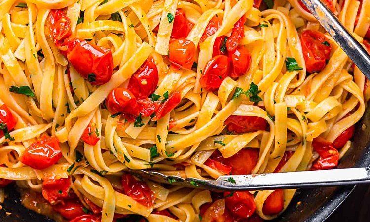 Нежная феттучини с томатами черри в сливочном масле — идеальное блюдо для тех, кто ценит простоту и вкус настоящей итальянской пасты. Яркий аромат свежих помидоров и сливочная мягкость соуса делают ее насыщенной и сытной, но при этом легкой. Это блюдо не требует мяса и идеально подходит для подачи на ужин и для гостей.
