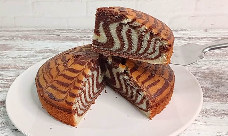 Готовая «Зебра» получается ровной, влажной и ароматной. Она долго не черствеет и отлично подходит к чаю или кофе.