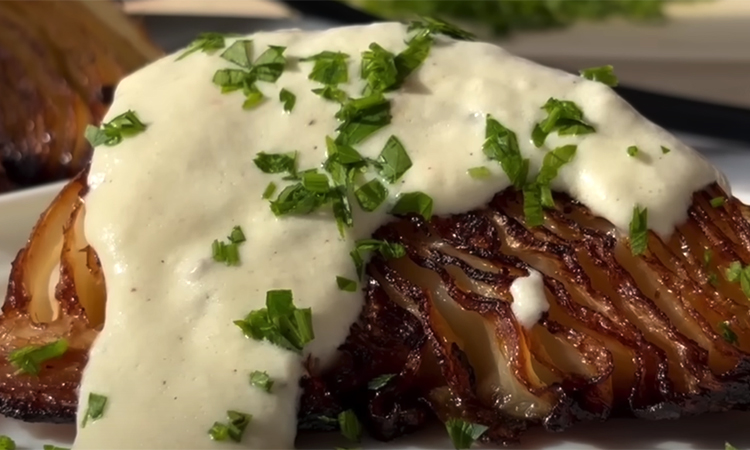 Приготовленная на сковороде капуста раскрывает совсем другой вкус — сладковатый, насыщенный, с ореховыми нотками. Секрет в том, что при жарке природные сахара карамелизируются, образуя аппетитную золотистую корочку. Сливочный соус с сыром делает стейки особенно мягкими и добавляет бархатистую текстуру, превращая обычную капусту в изысканное блюдо.