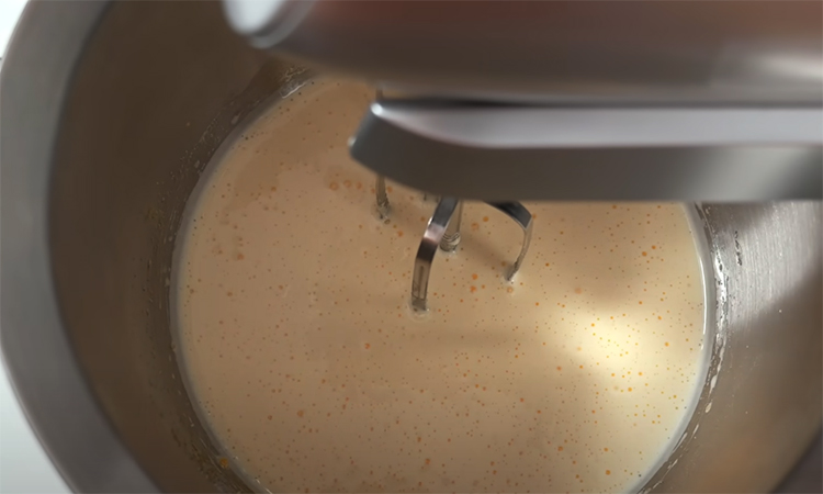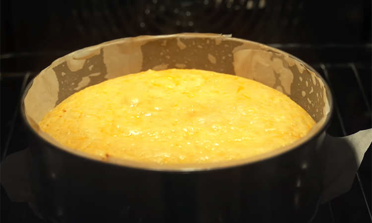 Перемешайте с яичной смесью — получится ароматная масса с густым цитрусовым запахом. Отдельно смешайте муку, разрыхлитель и корицу. Введите сухие ингредиенты к жидкой части, перемешайте до получения густого, но текучего теста. При желании добавьте изюм или клюкву. Форму диаметром около 20 см выстелите пергаментом и вылейте тесто.