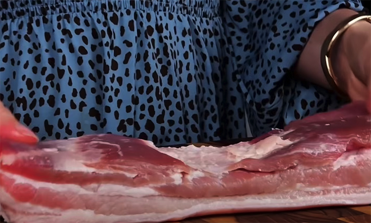 Перед подачей нарежьте грудинку тонкими ломтями. Она остается сочной даже в холодном виде, аромат чеснока и паприки усиливается, а текстура становится плотной и нежной. Такое мясо идеально для бутербродов, мясных нарезок и горячих блюд.