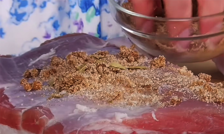 Затем заверните мясо в пергамент, а сверху в фольгу. Переложите на противень и запекайте в духовке при 180 градусах около 2 часов.