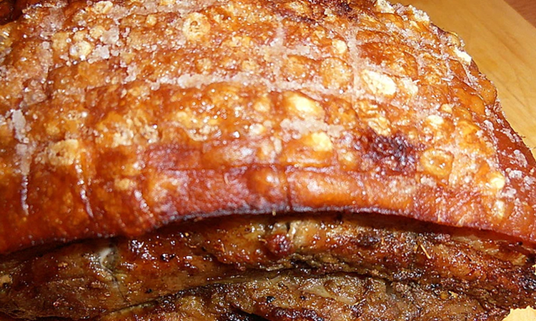 Промойте грудинку и обсушите бумажным полотенцем. Сделайте на коже неглубокие надрезы, чтобы мясо лучше пропиталось специями. В небольшой миске смешайте соль, паприку, орегано, перец, травы и измельченный чеснок. Добавьте растительное масло и тщательно перемешайте. Получившейся смесью натрите мясо со всех сторон.