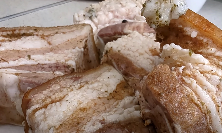 Хорошо перемешайте, чтобы специи покрыли каждый кусочек, затем заверните их в фольгу и заморозьте на 12 часов. Затем достаньте готовую закуску из морозильника, дайте чуть оттаять и можно пробовать.