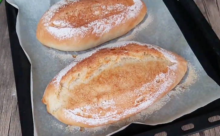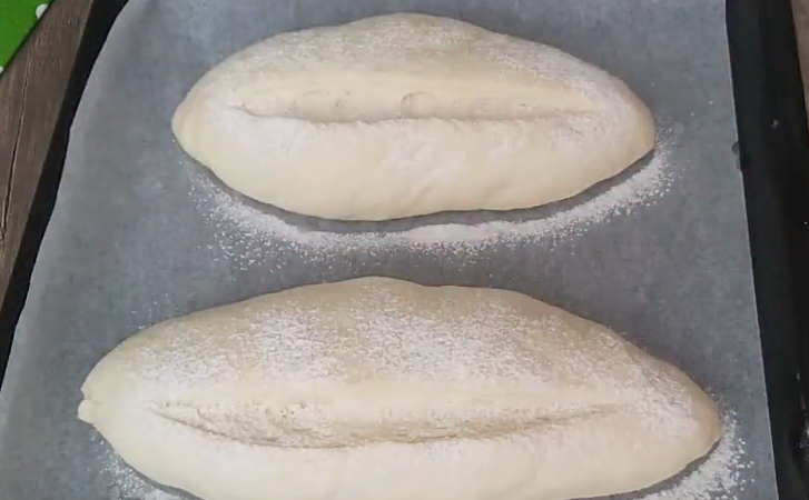 5. Разогрейте духовку до 200 °C. Переложите багеты на противень, можно застелить его пергаментной бумагой. Выпекайте 40 минут до золотистой корочки. Если хотите более хрустящую корочку, за 5 минут до конца можно слегка сбрызнуть багеты водой или поставить мисочку с водой в духовку.