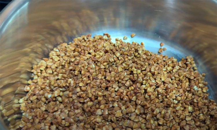Гречку промойте и залейте горячей водой в пропорции один к двум. Посолите, доведите до кипения и варите до полного испарения жидкости. Если есть готовая вчерашняя гречка — используйте её. Лук нарежьте кубиком, морковь натрите на тёрке и обжарьте на растительном масле до золотистого цвета. Добавьте итальянские травы, немного соли и дайте специям раскрыться в горячем масле — так овощи станут особенно ароматными.