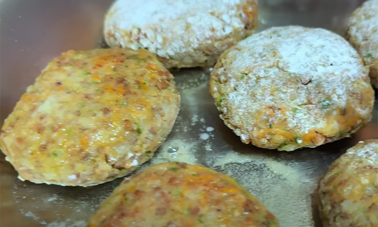 Фарш соедините с гречкой и овощами, добавьте соль, перец, чеснок, паприку, яйца, горчицу и панировочные сухари. Вмешайте всё до однородности, дайте постоять 5 минут. Сформируйте котлетки — плотные, круглые, чуть крупнее обычных. Чтобы они держали форму, сбрызните руки маслом. По желанию обваляйте гречаники в муке и обжарьте по 2 минуты с каждой стороны до румяной корочки.