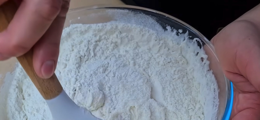 Всё тщательно перемешайте. Понемногу добавляйте муку, пока не получится мягкое тесто — оно должно слегка липнуть к пальцам, но не расплываться. Смажьте поверхность теста маслом и оставьте на 15–20 минут, чтобы клейковина набухла и сода «сработала». При разделке используйте масло вместо муки. Разделите тесто на кусочки по 80–90 г, раскатайте до толщины 5–7 мм.