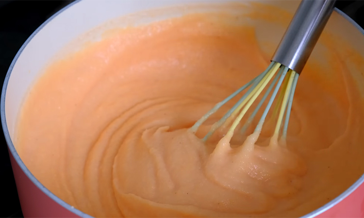 Промойте чечевицу под водой и слейте жидкость. Замочите её в кипятке на 30 минут, при желании добавьте соль. Взбейте в блендере до однородной массы и переложите в кастрюлю среднего размера. Варите на среднем огне, постоянно помешивая, пока смесь не начнет густеть, уменьшите огонь до средне-слабого и продолжайте мешать в течение 7–10 минут, пока масса не станет плотной.