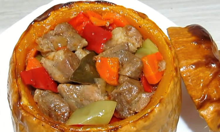 Ароматное и сытное блюдо, идеально подходящее для осеннего и зимнего периода. При запекании все ингредиенты пропитываются сладким и мягким ароматом тыквы, а начинка становится особенно нежной и насыщенной.