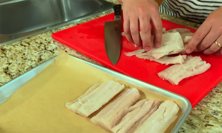 Накройте крышкой или фольгой и отправьте в разогретую до 200° духовку на 10 минут, затем аккуратно перемешайте, чтобы филе осталось целым, и прогрейте еще 5-7 минут. Подавать можно с макаронами, рисом или картофельным пюре, добавив немного оливкового масла к гарниру.