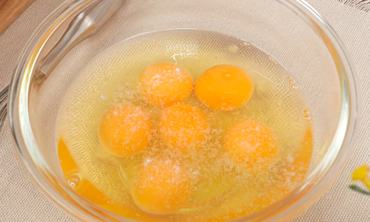 3. В миске взбейте яйца венчиком до однородной массы. Мелко нарежьте шнитт-лук и добавьте его в яйца. Посолите, поперчите и ещё раз перемешайте. Смесь должна быть однородной, с зелеными вкраплениями — это добавит свежести и цвета готовому блюду.