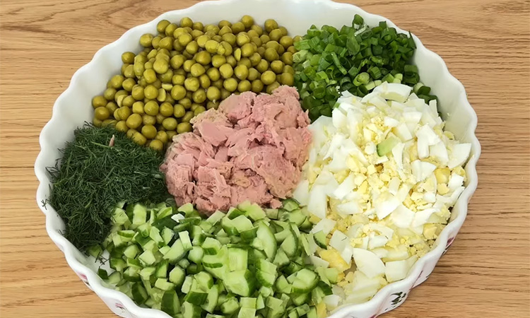 Иногда достаточно поменять соус, чтобы привычный салат стал новым. Тунец раскрывается иначе, когда к нему добавляется смесь йогурта, чеснока и горчицу вместо майонеза, в таком варианте салат получается чуть сытнее привычного, но все еще остается легким. Подавать его можно вместо полноценного ужина, или быстрого перекуса.