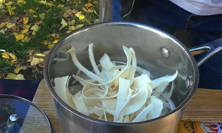 Корень хрена очистите при помощи овощечистки и нарежьте тонкими длинными пластинками. Так удобнее всего, они красиво ложатся в банку и хорошо впитывают маринад. Нарезанный хрен сложите в миску или кастрюлю и прикиньте, сколько получится по объему. Поставьте на огонь кастрюлю с водой и доведите до кипения. Опустите туда хрен и бланшируйте около 2 минут, не больше. Это смягчит резкость и сохранит аромат. Сразу после бланширования переложите хрен в холодную воду, чтобы остановить процесс и сохранить хрусткость.
