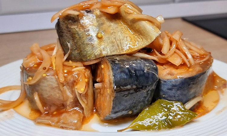 Свежая скумбрия, выдержанная в правильном маринаде, приобретает вкус, от которого трудно отказаться и тем, кто вообще не любит рыбу. Уксус, кориандр и душистый перец придают ей нужную глубину, а лук и чеснок превращаются в отдельное лакомство, даже их подъедают полностью. Сама рыба получается плотной, нежной, напоминающей семгу, или лосось.