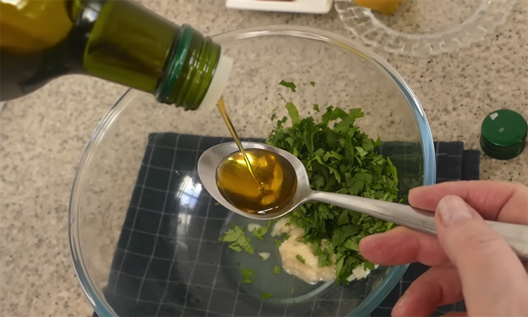 В ступке разотрите чеснок с половиной чайной ложки соли до состояния пасты. Переложите чесночную пасту в миску, добавьте сок лимона, мелко нарезанную петрушку и кинзу. Влейте оливковое масло, добавьте мед и специи: сладкую паприку, острую паприку и зиру. Перемешайте до однородности. Горячую морковь переложите в миску с соусом и аккуратно перемешайте, чтобы каждый кусочек покрылся ароматной заправкой.