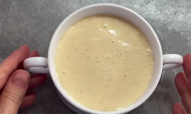 Взбейте массу блендером до однородности. Смажьте жаропрочную кружку или форму каплей растительного масла, вылейте в неё смесь и накройте крышкой для микроволновки. Выпекайте при мощности 450 Вт в течение 4 минут 20 секунд. Готовый чизкейк должен остаться слегка влажным в центре — так он сохранит нежность и не пересушится.