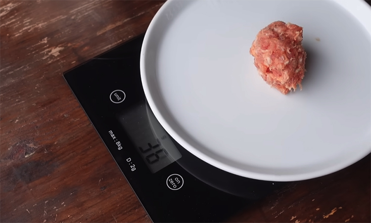 Разделите фарш на 28–30 порций по 40–42 г и скатайте шарики влажными или смазанными маслом руками. Выложите митболы на решетку в зону непрямого жара, оставляя промежутки между шариками, накройте крышкой и готовьте 20 минут при стабильной температуре, пока дым от чурки мягко не пройдет.