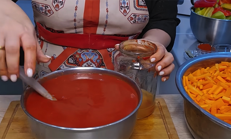 Ароматная, густая, сочная смесь моркови, лука и разноцветных перцев в насыщенном томатном соусе особенно популярна в Армении, где почти у каждой семьи есть свой собственный вариант этого рецепта. Вкуснее всего считается ереванский: по банкам сразу закатывается почти полноценный салат, острота которого позволяет использовать его и как соус.