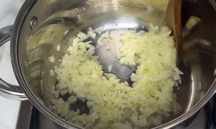 Промойте красную чечевицу, рис и булгур до прозрачной воды, затем дайте воде полностью стечь. Мелко нарежьте крупную луковицу и измельчите два зубчика чеснока. В кастрюле соедините ложку растительного масла и около 10 г сливочного. Нагрейте на среднем огне и высыпьте нарезанный лук. Помешивайте, пока лук не станет прозрачным и мягким. Он должен немного поменять цвет и приобрести легкий сливочный аромат. Добавьте измельченный чеснок и готовьте еще минуту, чтобы запах стал более насыщенным. К обжаренному луку всыпьте чечевицу, рис и булгур.