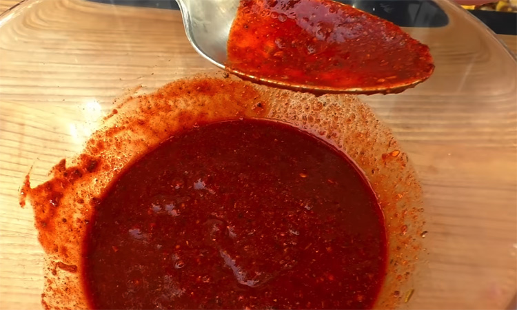 Щеку промойте и обсушите. С обеих сторон сделайте глубокие надрезы крест-накрест почти до шкуры, чтобы маринад лучше пропитал мясо. В отдельной миске смешайте соевый соус, уксус, сушеный чеснок, паприку, приправу для шашлыка, травы, перцы и соль. Маринад должен получиться густым, ароматным, с легкой кислинкой.