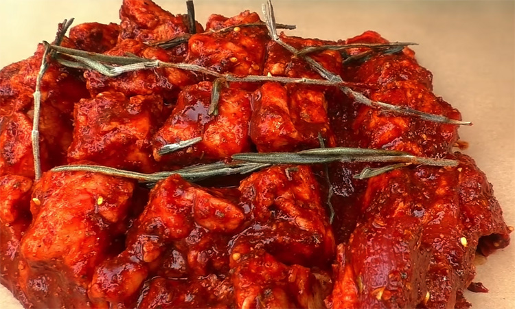 Переложите свиную щеку в посуду для маринования и руками вотрите смесь в мясо, чтобы специи попали в каждый надрез. Убедитесь, что поверхность и внутренние разрезы полностью покрыты маринадом. Если щека жирная, не бойтесь добавить чуть больше соли — жир усиливает вкус и требует баланса.