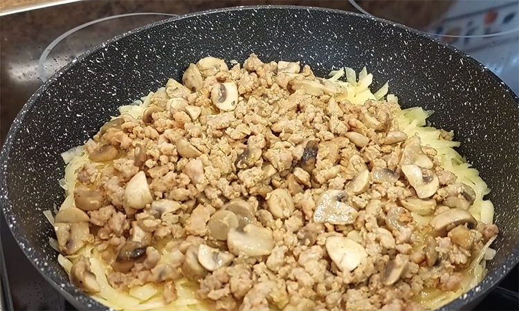 Картофельный пирог на сковородке привлекает сочетанием мягкой середины и хрустящей корочки, которая появляется за счет томления под крышкой. Мясо и грибы внутри создают глубокий вкус, а картофельная основа делает пирог плотным и насыщенным. Блюдо идеально подходит для семейного ужина.