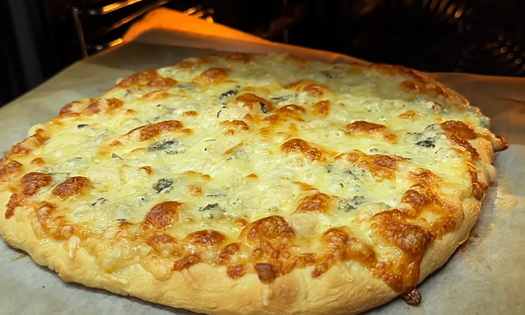 Сочная домашняя пицца с хрустящей корочкой и богатым сырным вкусом. Несмотря на то, что готовится в обычной духовке, она пахнет как будто только что из настоящей печи, с лёгкой ноткой дымка.