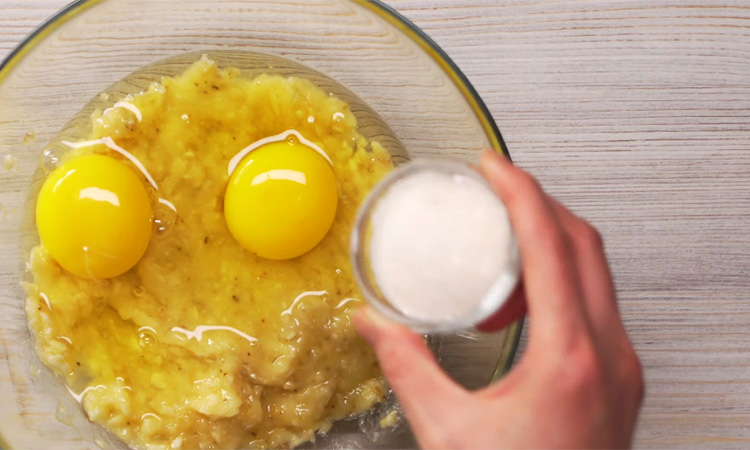 Начните с того, что разломите бананы на части и соедините их с яйцами в чаше блендера, чтобы масса быстро превратилась в однородную основу. Введите ванильный экстракт, немного соли и корицу, позволяя специям раскрыть аромат. Всыпьте муку, предварительно просеяв ее, чтобы тесто получилось воздушным, и аккуратно перемешайте, сохраняя структуру.