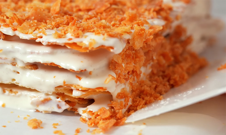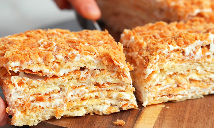 Правильный Наполеон отличается контрастом текстур: коржи обязательно должны хрустеть, а крем быть нежным. В домашней практике торт часто выходит чрезмерно мягким — покажем, как приготовить его необыкновенно вкусным и хрустящим, коржи не потеряют структуру даже после пропитки.